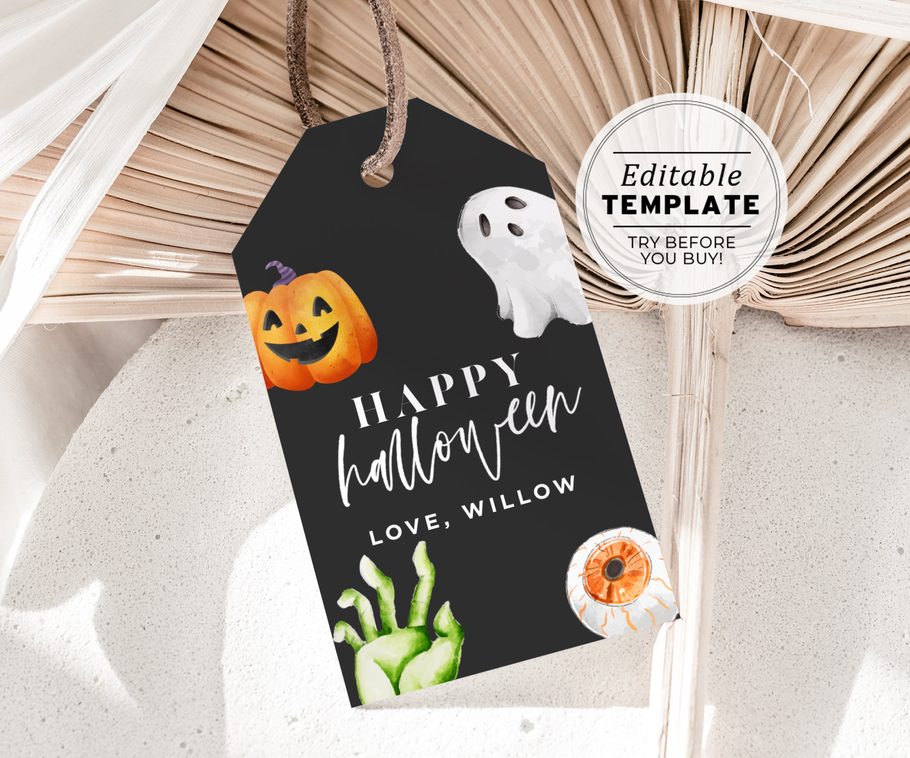 Cute halloween gift tag editable template. Edit the words, text & background colour and add your own pictures to make it your own!