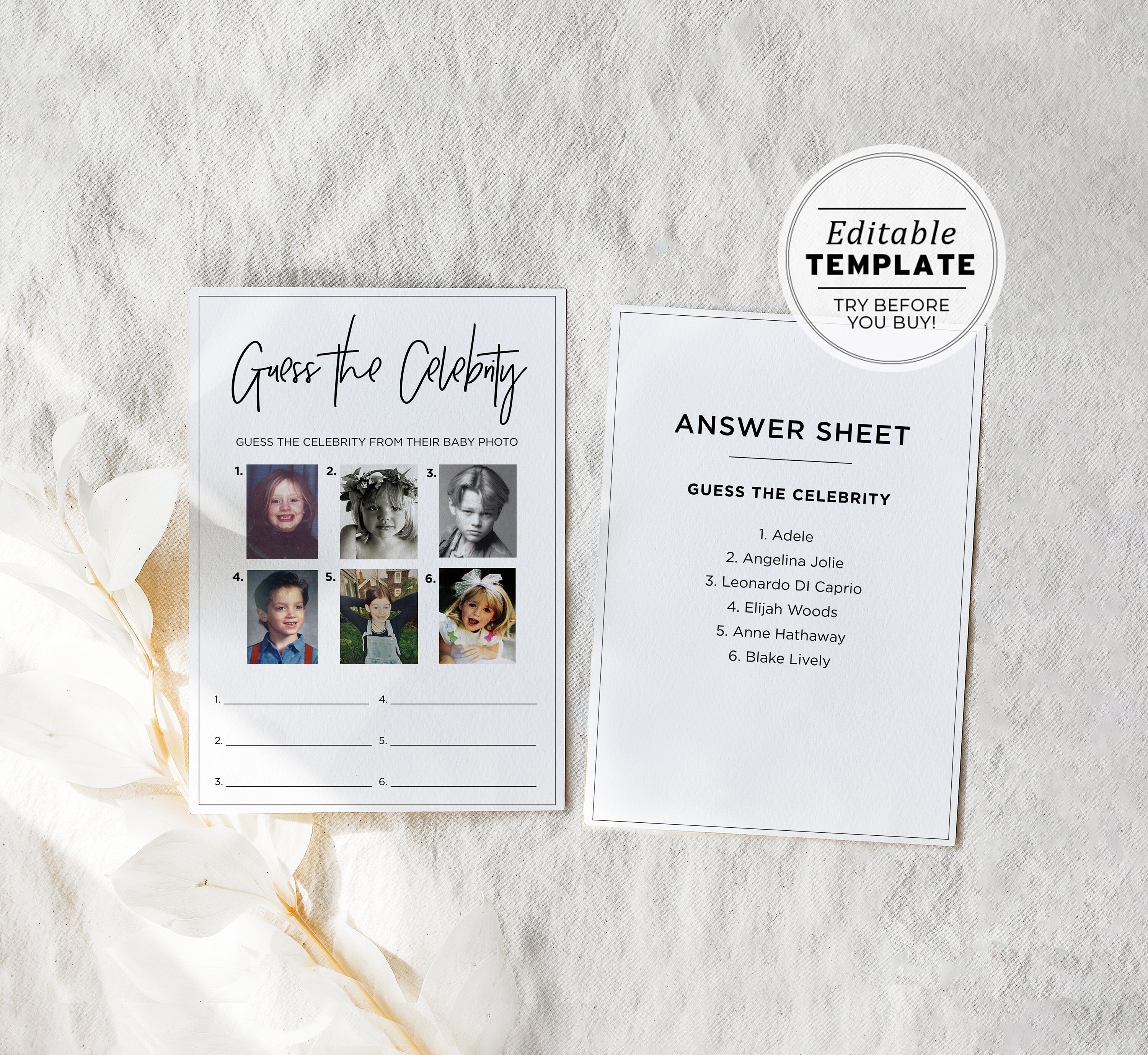 A popular and fun 'Guess the Celebrity' game. Edit it with your words to make them your own!