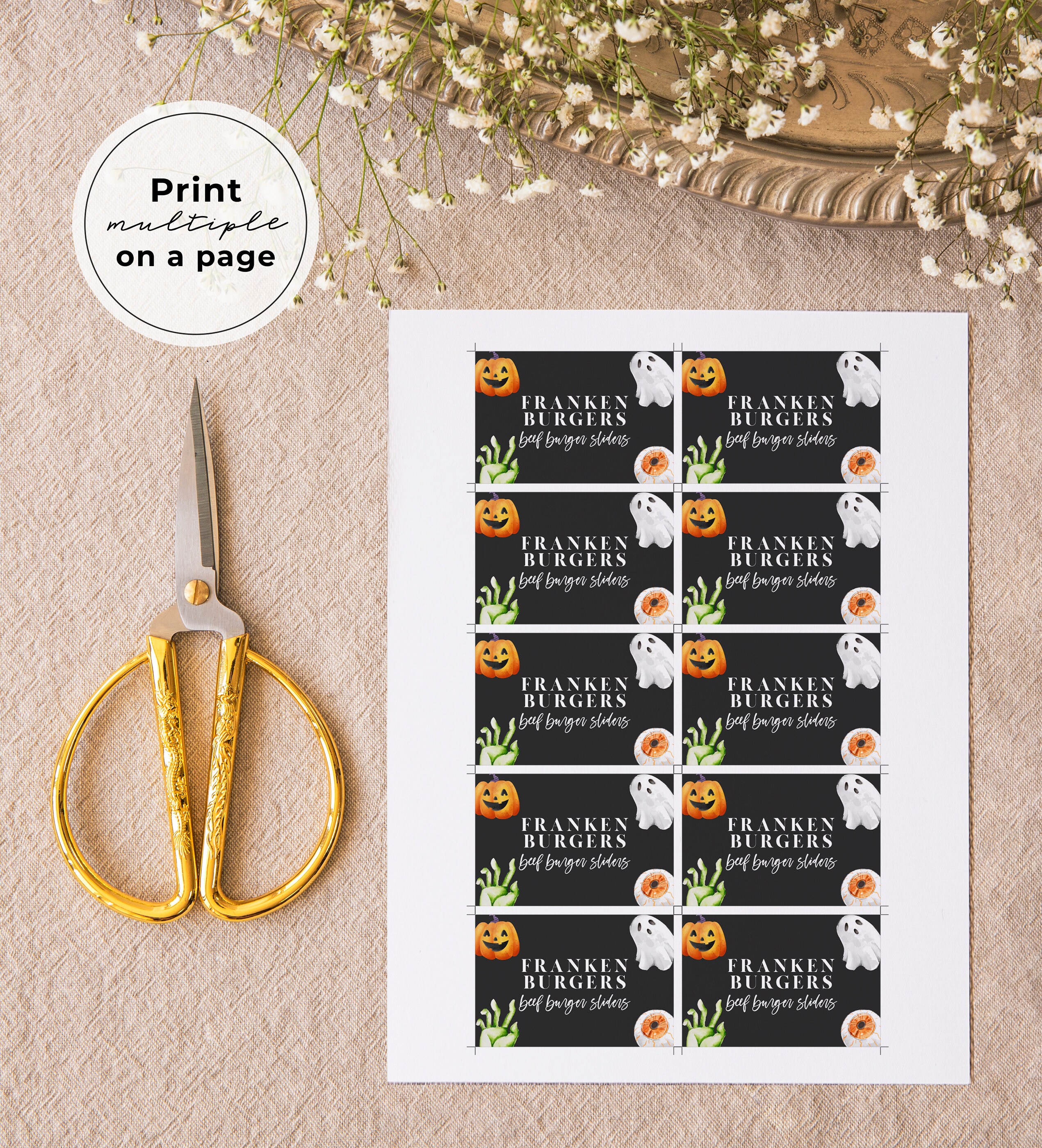 You can download as a PDF that set out multiple tented cards per page for ease of printing on a A4 or US Letter Size. Includes crop marks for ease for trimming to size.