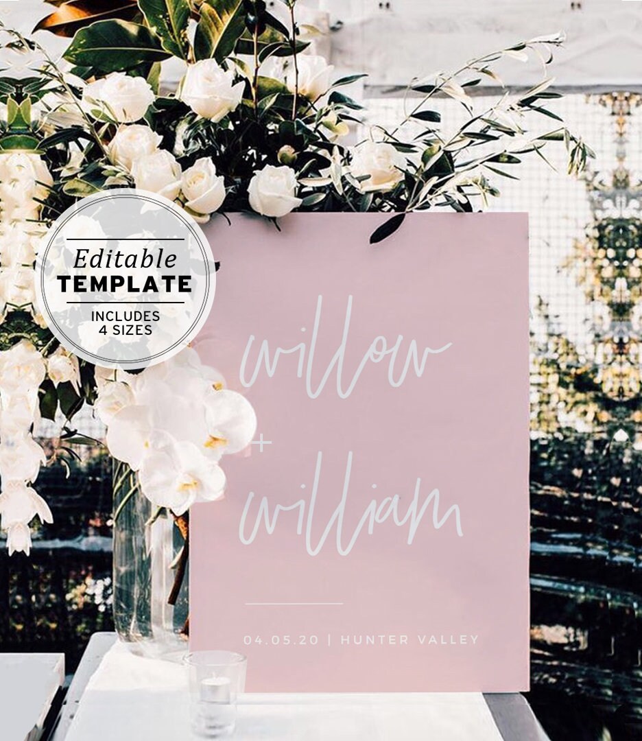 This minimalist wedding welcome sign template has a distinctly elegant aesthetic, a perfect example of the adage "less is more". Don't let your event signage be an afterthought! Let this editable welcome sign tell your story. Edit the design with your words to make it your own!